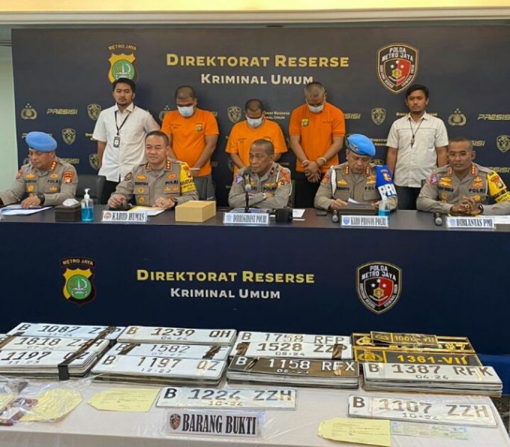 JAKARTA (Realita)- Polda Metro Jaya menangkap komplotan jaringan jual beli pelat nomor bersandi pejabat negara (Rahasia dan Khusus) hingga pelat dinas Polri
