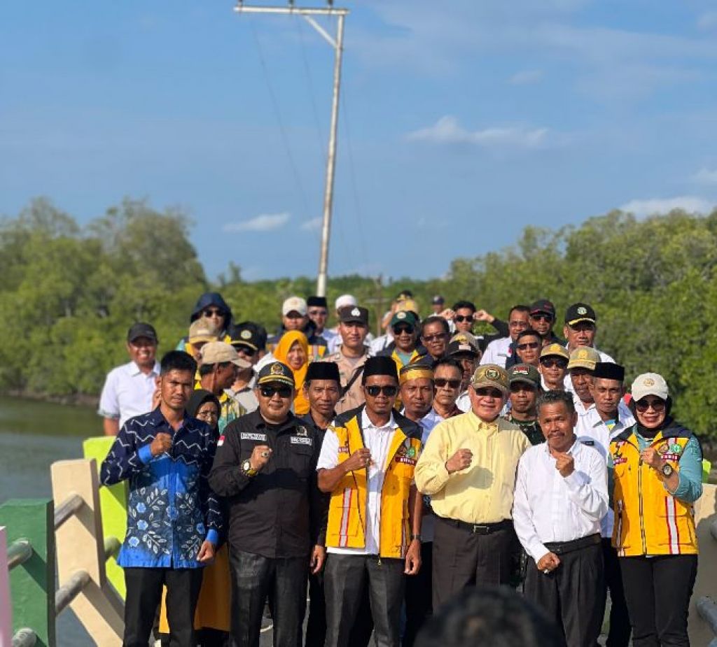 KOTABARU (Realita) - Bupati Kotabaru H. Sayed Jafar, SH bersama rombongan dalam Kunjungan Kerja di Kecamatan Pulau Laut Selatan, melakukan peninjauan pembangunan jembatan Desa Tanjung Serudung yang kini telah terealisasi.