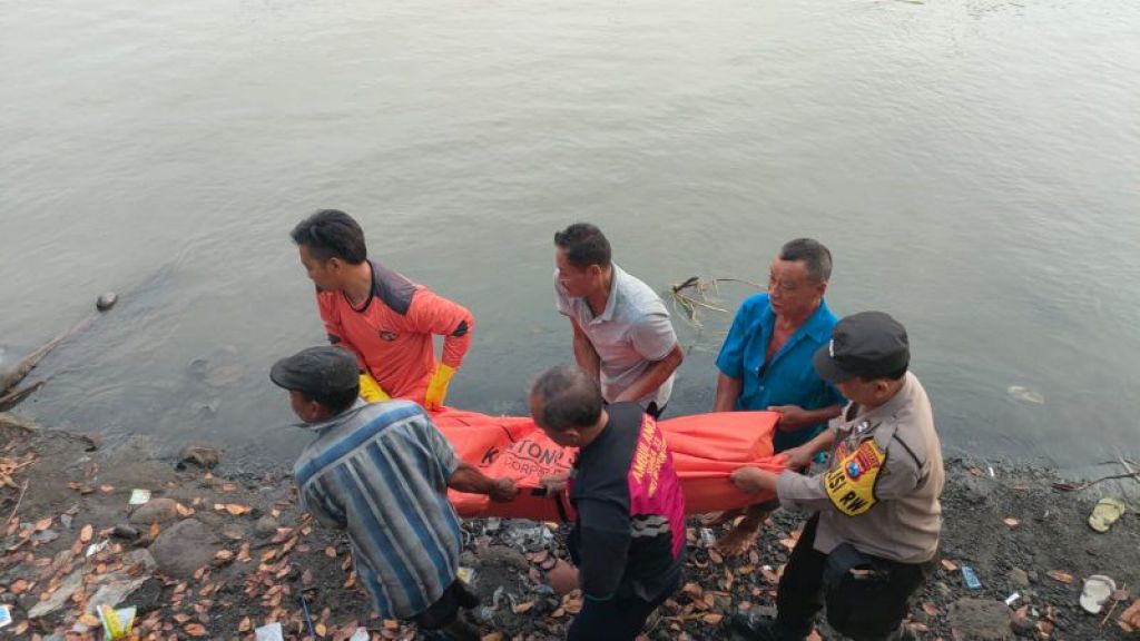 Kemudian mereka mencari korban di sekitaran sungai penambangan, dan melihat korban meninggal dunia dengan kondisi mengambang di pinggir sungai.