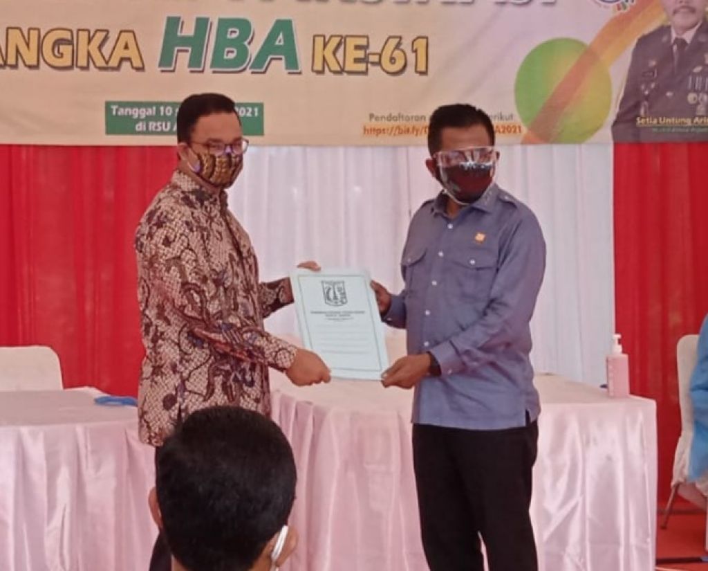 Selain dihadiri Wakil Jaksa Agung, Setia untung Arimuladi, Jamwas Amir Yantho, Kepala kejaksaan Tinggi DKI Jakarta, Dr Asri Agung, Aspidum, Anang Supriyatna, serta Kajari dari lima wilayah, gubernur DKI Jakarta, Anies Bawesdan dan jajarannya terlihatserta Pelaksanaan Vaksinasi dalam rangka memperingati HBA ke-61 Tahun 2021 dilaksanakan dengan mematuhi dan memenuhi protokol kesehatan secara ketat, antara lain dengan menerapkan protokol 3M yaitu memakai masker, menjaga jarak dan mencuci tangan pakai sabun dan/atau hand sanitizer. hrd