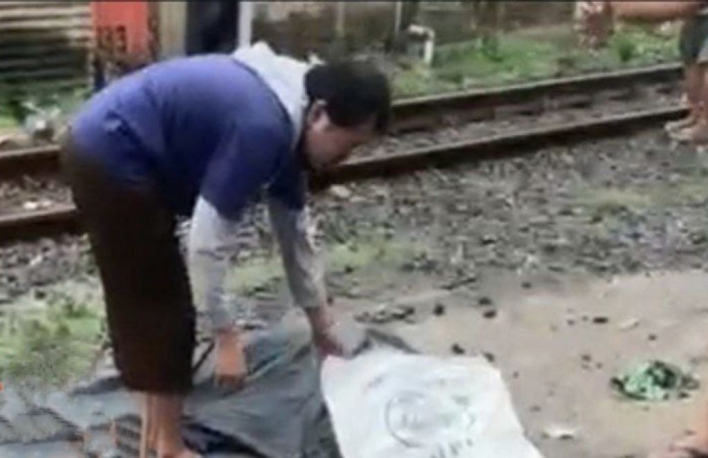 Wanita itu tewas dan tergeletak di pinggir rel kereta api dengan bersimbah darah. Warga sekitar yang melihat kejadian tersebut langsung menutupi korban dengan karung.