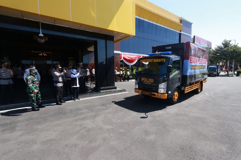 Dalam kesempatan ini, Gubernur Jatim secara simbolis melepas bantuan yang didistribusikan oleh Bhabinkamtibmas dan Babinsa, di masing - masing kelurahan. Bantuan dalam rangka Bakti Sosial Bhayangkara untuk negeri ini sebanyak 21 ton beras, dan 42.000 paket sembako, dan di berikan kepada masyarakat yang membutuhkan, atau yang mengalami dampak langsung pandemi covid-19.