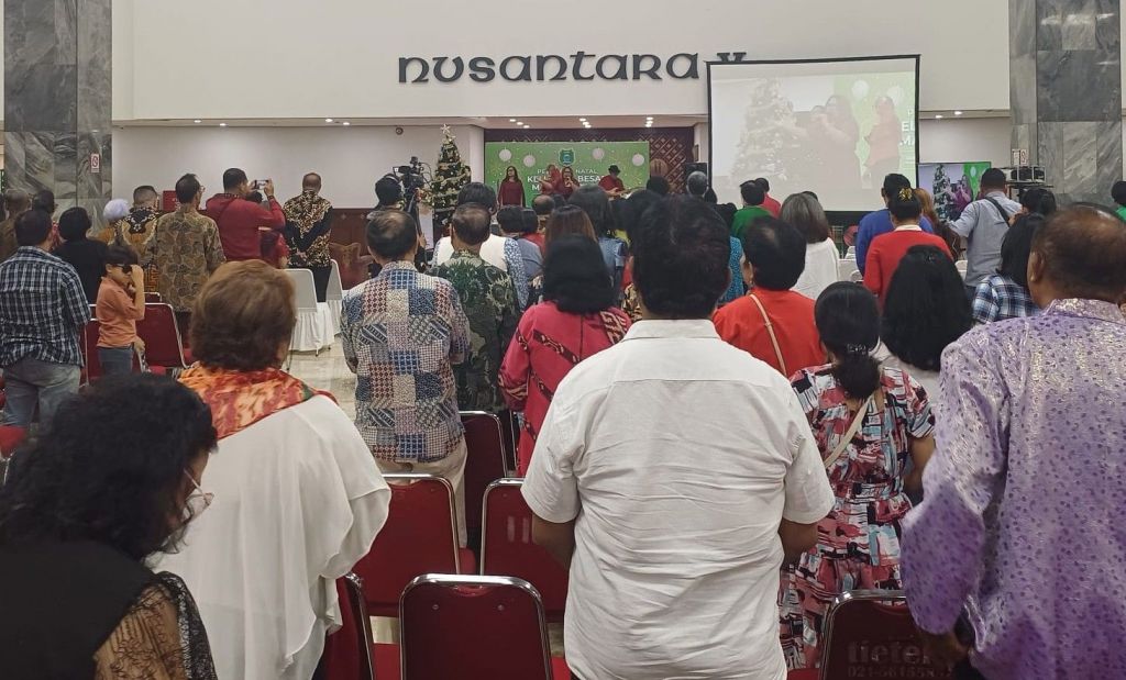Perayaan Natal untuk memperingati Natal di komplek Parlemen Senayan, Nusantara V, Jakarta Pusat, Sabtu (13/1/2024).