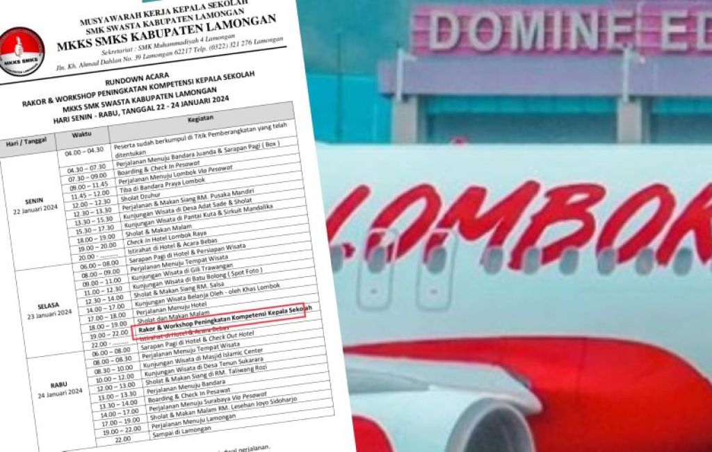 Kegiatan itu di ikuti oleh sebanyak 61 SMK Swasta di Lamongan dengan tujuan pertama di Bandara Praya Lombok dan mengunjungi beberapa tempat wisata. Sementara kegiatan Rakor dan Workshop tersebut dijadwalkan di hari ke 2 disebuah hotel yang hanya diberikan waktu 3 jam saja, serta selebihnya untuk berwisata.def