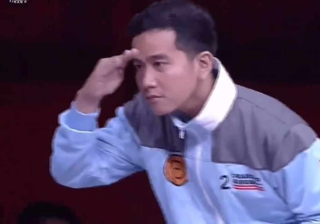 JAKARTA- Calon wakil presiden nomor urut 2 Gibran Rakabuming Raka bertingkah seperti orang yang mencari-cari barang hilang. Dia menunduk-melongok ke arah calon wakil presiden nomor urut 3 Mahfud MD.