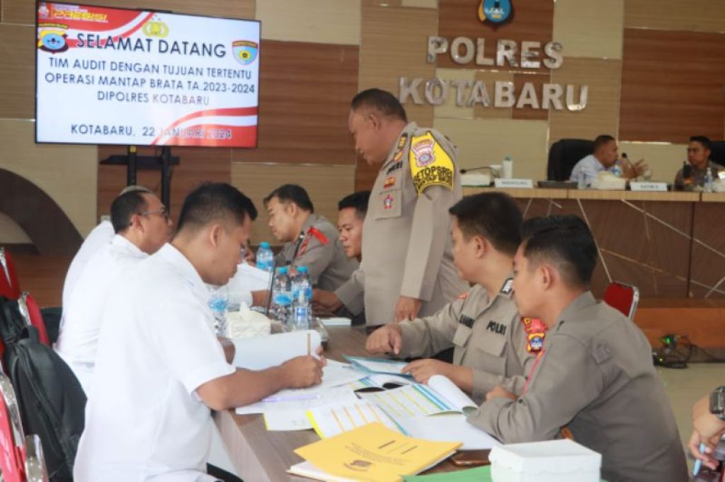 KOTABARU (Realita)- Pelaksanaan Audit Ops Mantap Brata TA. 2023-2024 oleh Tim Itwasda Polda Kalsel di Aula Sanika Satyawada Polres Kotabaru, Senin (22/01/2023).