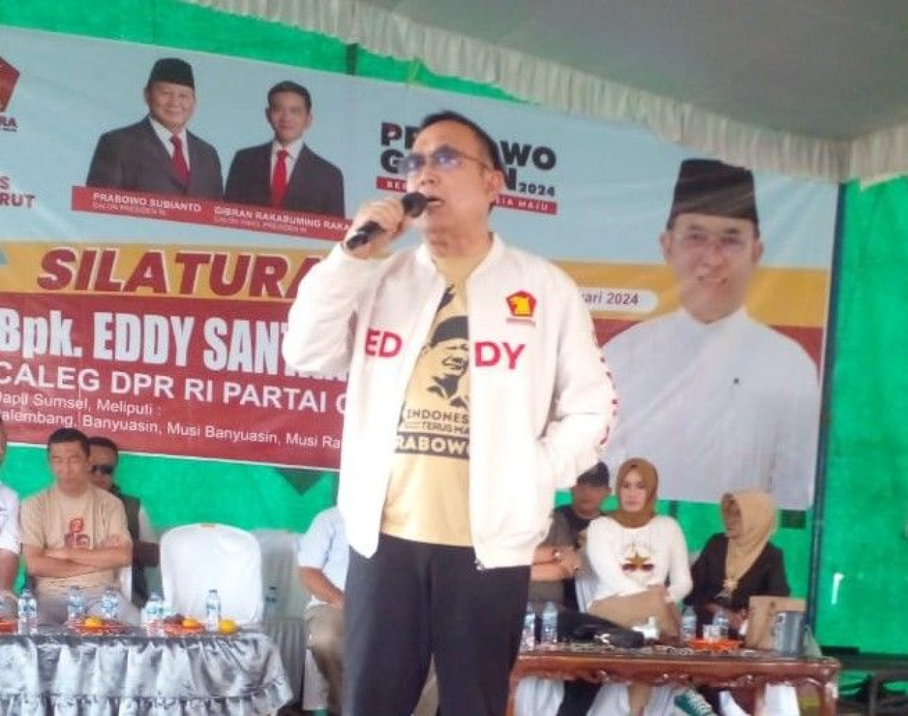 BANYUASIN (Realita) - Ir.H.Edi Santana Putra, MT, Calon Legislatif (Caleg) Dewan Perwakilan Rakyat-Republik Indonesia (DPR-RI) dari Partai Gerindra, Daerah Pemilihan Sumatera Selatan (Dapil Sumsel) 1 yang meliputi wilayah Palembang, Banyuasin, Musi Banyuasin, Musi Rawas, Lubuklinggau dan Muratara menggelar sosialisasi.