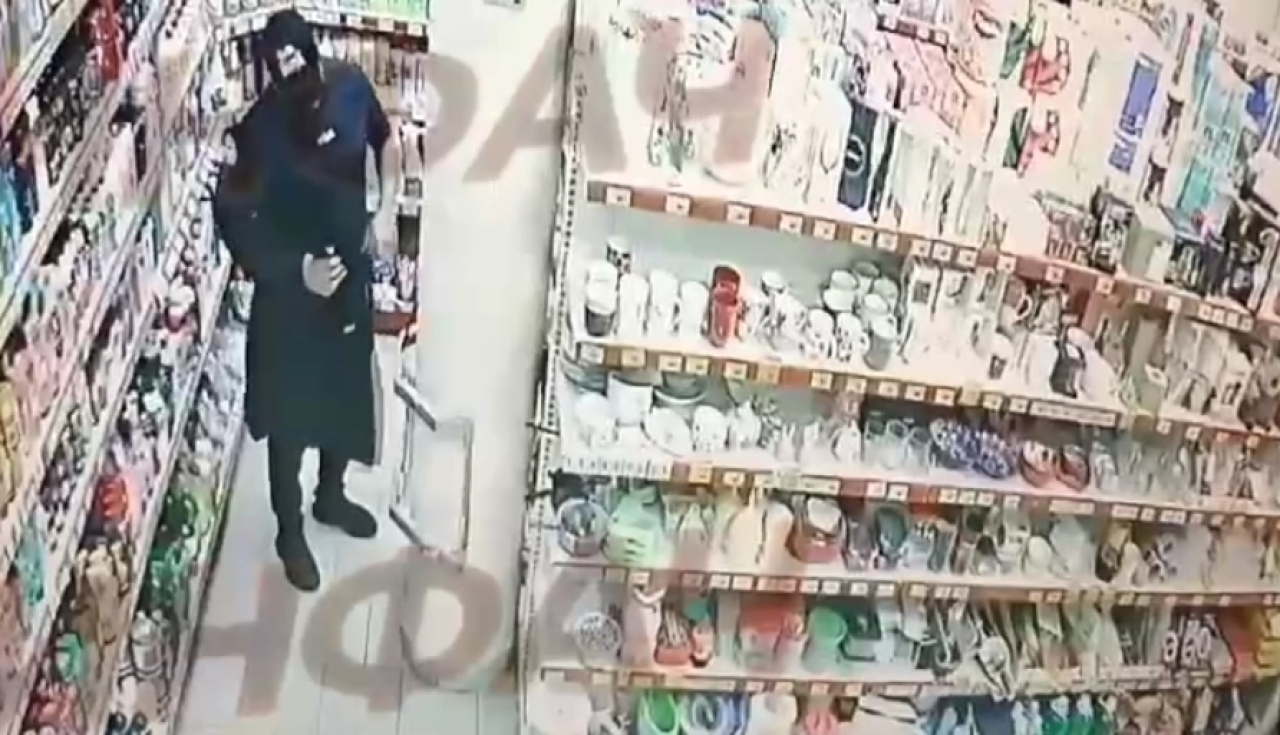 Selama sekitar satu menit, pengunjung tersebut memilih pisau yang cocok di bagian peralatan makan, setelah itu dia pergi ke belakang rak dan terdiam.