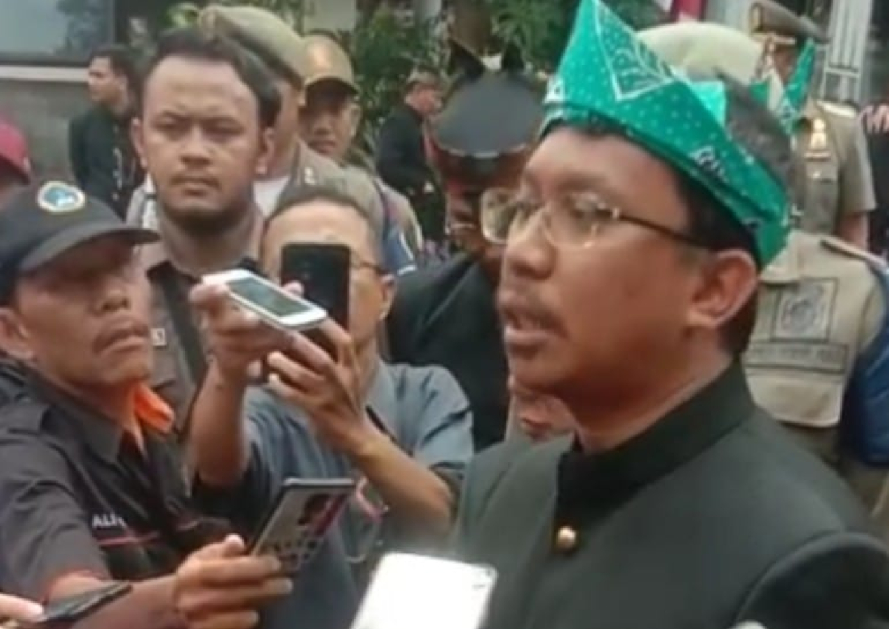 Berdasarkan pantauan di lapangan, Gus Muhdlor tampak mengenakan pakaian hitam dan udeng hijau saat keluar dari kantornya menuju Alun-Alun Sidoarjo, sekitar pukul 08.15 WIB.