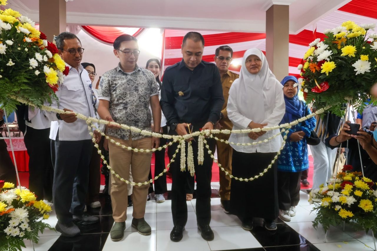 SURABAYA (Realita)- Wali Kota Surabaya Eri Cahyadi meresmikan Kantor Kecamatan Krembangan yang baru dan Sentra Wisata Kuliner (SWK) Krembangan di Jalan Ikan Trowani Nomor 1 Perak Barat, Krembangan, Surabaya, Selasa (30/1/2024). Usai meresmikan kantor baru Kecamatan Krembangan dan SWK Krembangan, Wali Kota Eri langsung meninjau ke dalam kantor kecamatan dan SWK. Selanjutnya, ia mencicipi masakan pedagang SWK, ia juga makan bersama dengan warga dan tamu undangan yang lainnya.