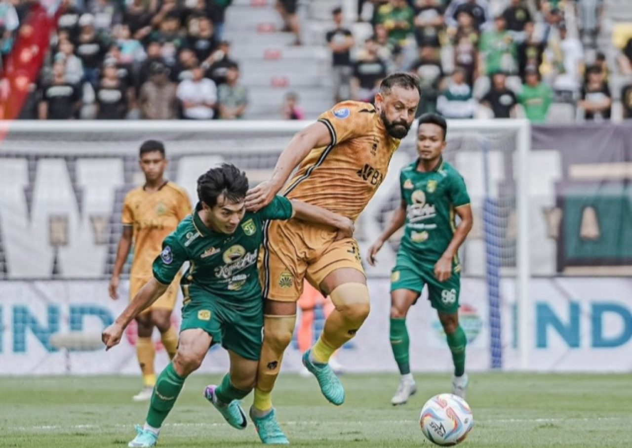 SURABAYA - Persebaya Surabaya berhasil menyegel tiga poin di depan bonek yang memadati Stadion Gelora Bung Tomo Surabaya setelah menang 1-0 atas Bhayangkara FC dalam laga pekan ke-24 BRI Liga 1 2023/2024, Minggu (4/2/2024) sore WIB.