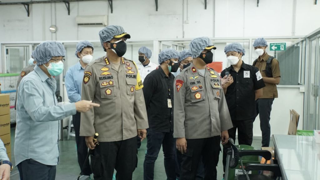 SIDOARJO (Realita)- Kapolresta Sidoarjo Kombes Pol. Kusumo Wahyu Bintoro, Kamis (15/7/2021), mengunjungi perusahaan farmasi PT Interbat dan PT Bernofarm, untuk memastikan produksi obat perawatan bagi penderita Covid-19 yang diproduksi kedua industri farmasi tersebut terpenuhi.