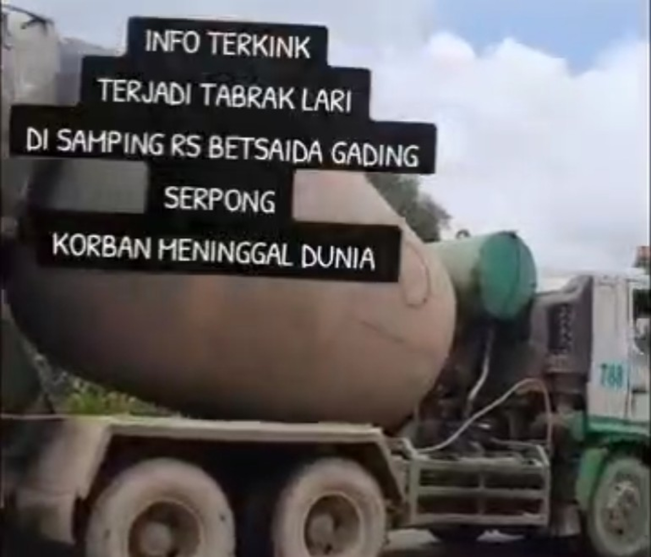 Dari keterangan saksi-saksi di lokasi menyebut, bahwa truk molen melaju dari arah Asobirin menuju Legok melalui Jalan Terusan Pondok Hijau Golf Gading Serpong.