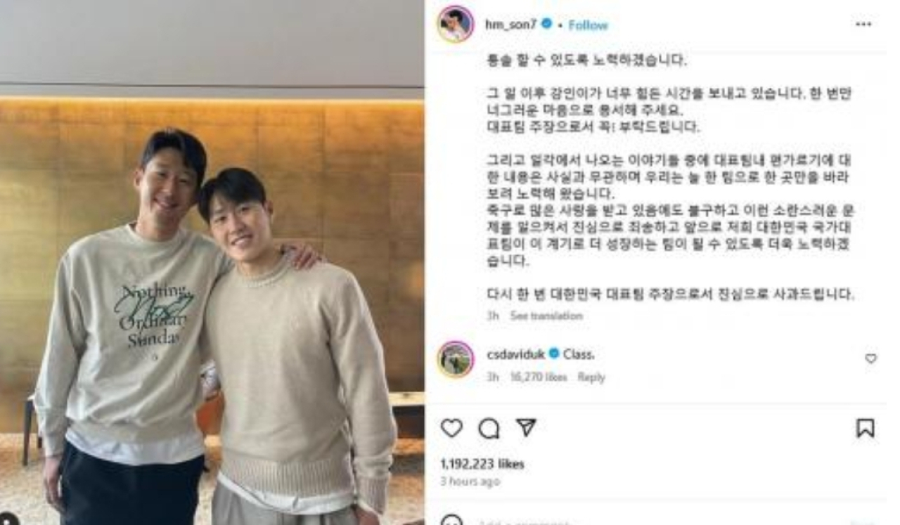 “Kang-in sedang melalui masa yang sulit setelah insiden di Piala Asia 2023. Kami dengan tulus meminta maaf karena menyebabkan keributan. Kami akan bekerja lebih keras untuk membantu tim nasional Korea Selatan semakin bertumbuh di masa depan. Sekali lagi sebagai kpten Timnas Korea Selatan, saya meminta maaf dengan tulus,” lanjut winger Tottenham Hotspur ini.