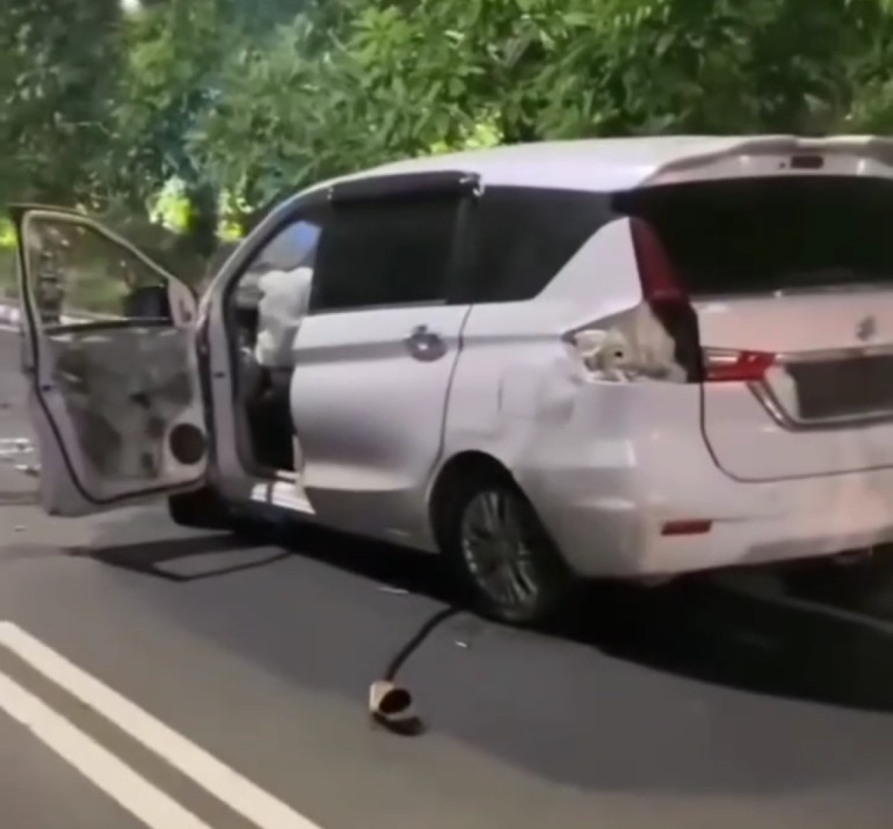 Menurut saksi di lokasi diduga pengendara mobil tersebut sebelum nya juga telah menabrak seorang penjual kacang di jln.Panglima Sudirman dan kabur.