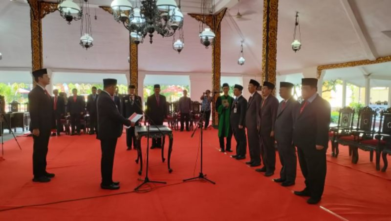 Rangkaian pelantikan dan pengambilan sumpah/janji pejabat pimpinan tinggi pratama berlangsung khidmat di Pendopo Keraton Sumenep.