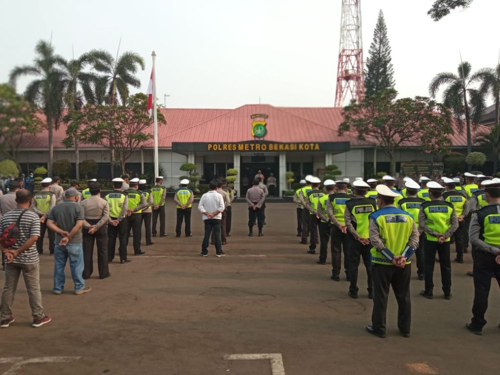 Gelar pasukan yang diikuti personil gabungan anggota Polres Metro Bekasi Kota, Kodim 0507/ Bekasi, Satpol PP dan Dinas Perhubungan Kota Bekasi dengan kekuatan penuh persiapan untuk pengamanan malam takbiran yang ditiadakan dan pelaksanaan Sholat Ied yang juga ditiadakan oleh Pemkot Bekasi karena masa PPKM darurat.