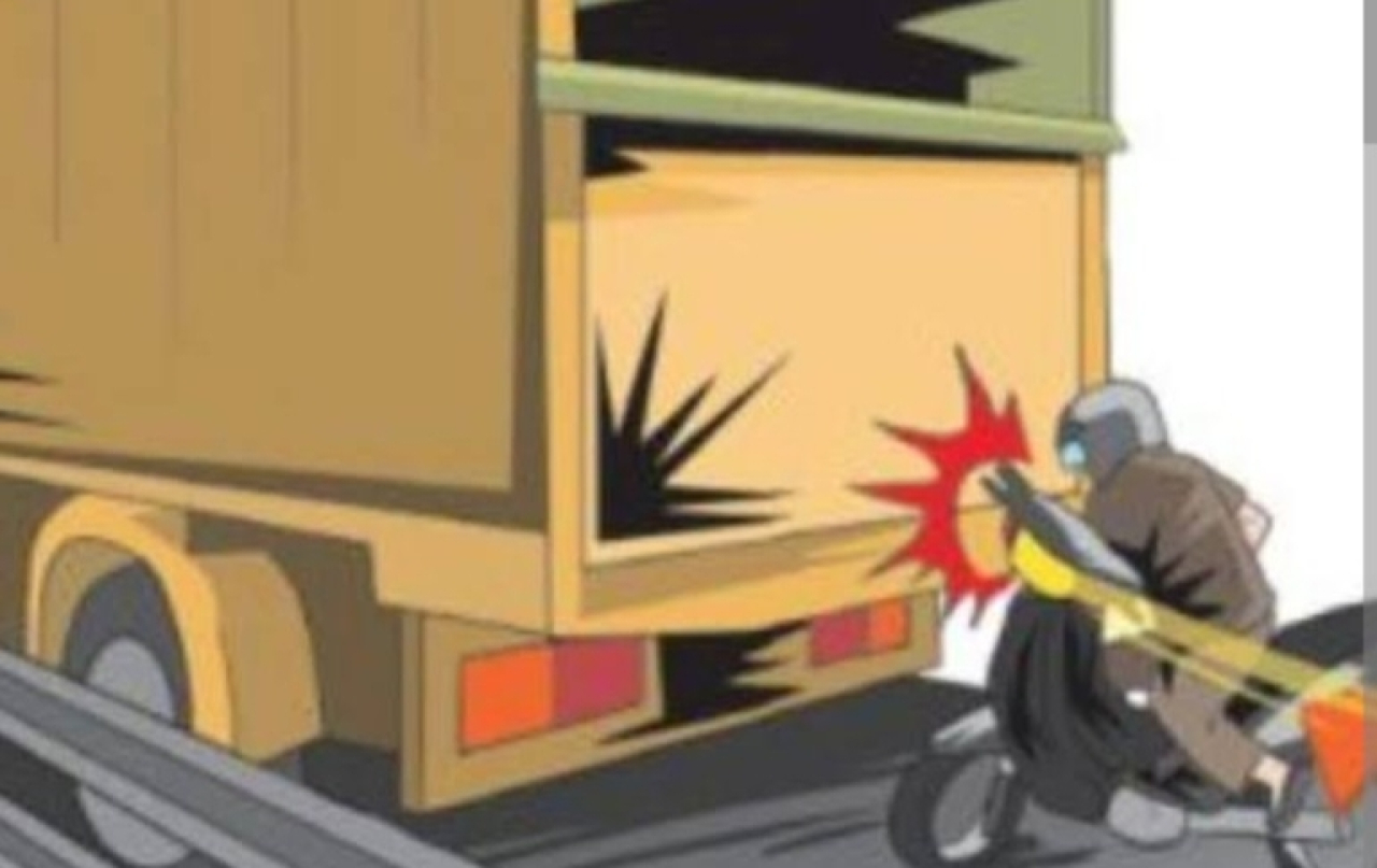 Karena tidak dapat menghindari kecepatan, motor itu pun menabrak bagian belakang kanan truk Hino No. Pol. DD 8693 LJ yang sedang parkir itu.
