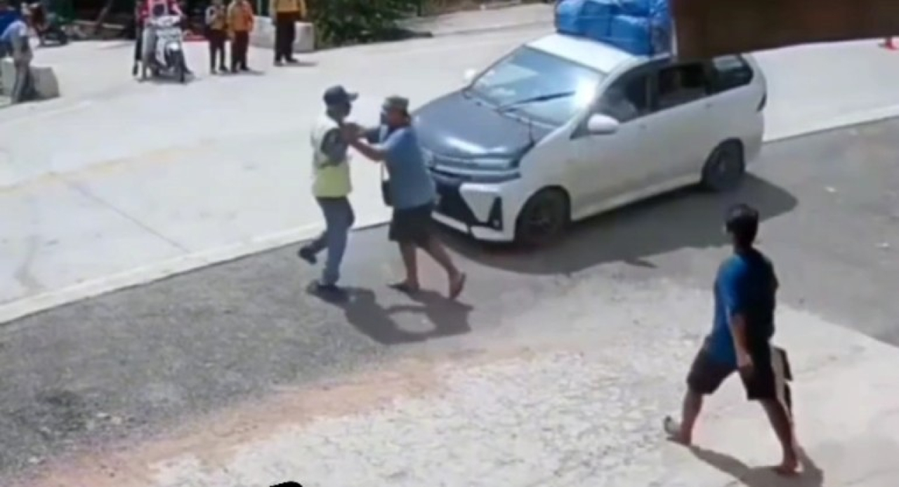 Sontak tukang parkir tersebut melempar tongkat lampu lalin dan mengenai mobil. Mobil yang sudah lewat tersebut langsung putar balik dan mengamuk terhadap tukang parkir.ah