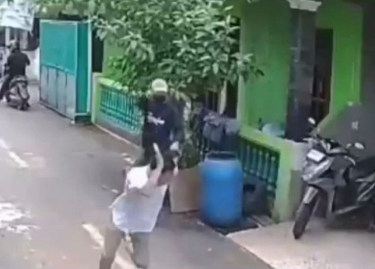 "Saya ke warung mau beli rokok, melihat ada satu pelaku di ujung lorong, saya kira dia Gojek. Jalan lagi ke depan satu pelaku lagi merusak kunci motor karena itu bukan pemilik rumah langsung saya teriaki maling,"katanya.