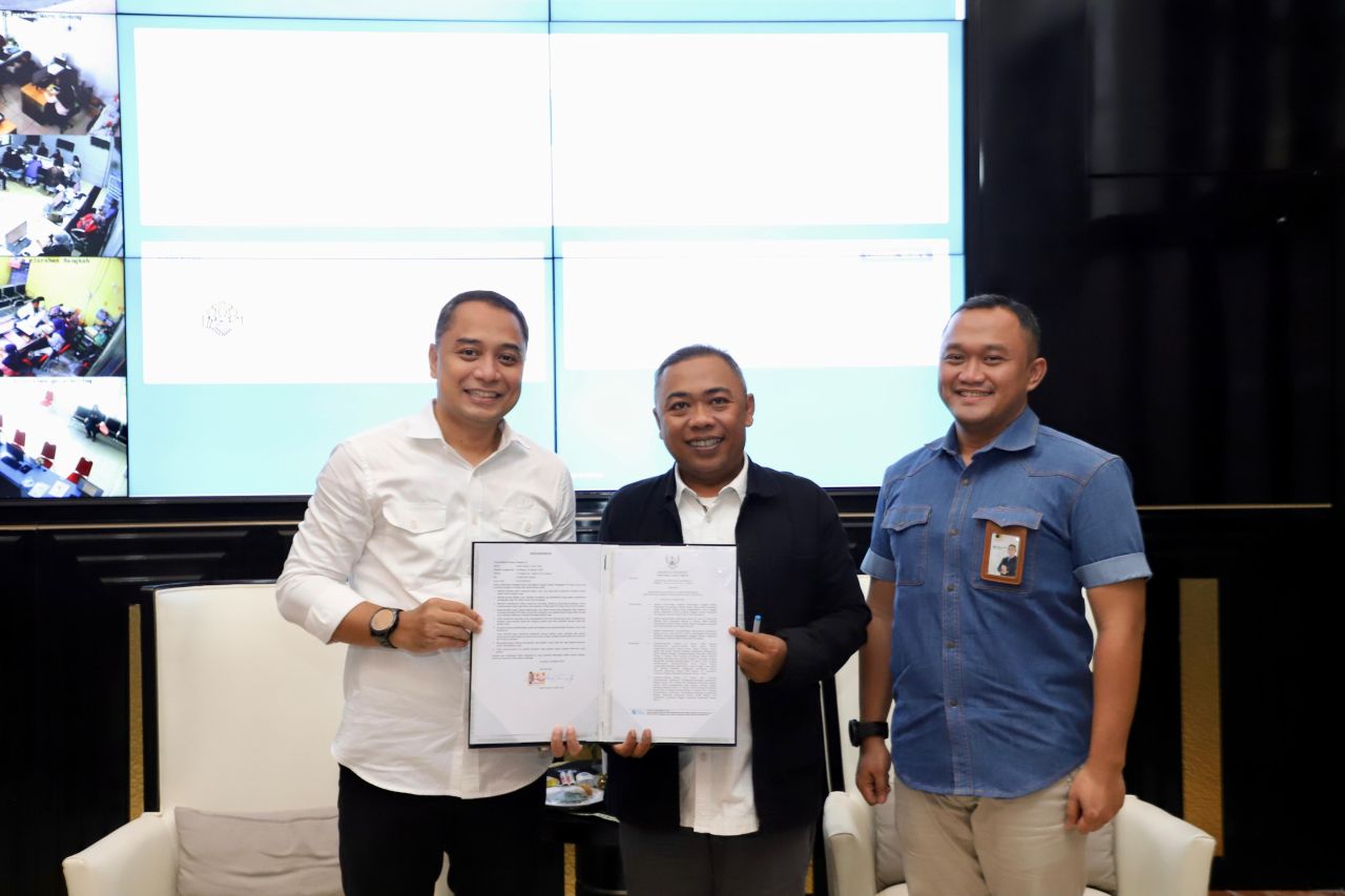 SURABAYA (Realita)- Wali Kota Surabaya Eri Cahyadi akhirnya melantik dan menyerahkan Surat Keputusan (SK) Wali Kota Surabaya tentang Badan Pengawas (Bawas) Perusahaan Daerah (PD) Pasar Surya yang baru. Pelantikan dan penyerahan SK itu dilakukan di ruang kerja Wali Kota Surabaya, Jumat (8/3/2024).