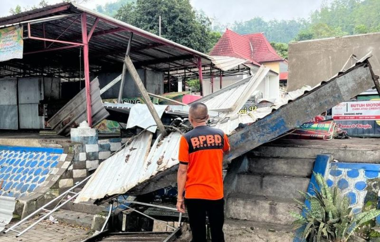 Dari data di Badan Penanggulangan Bencana Daerah (BPBD) Ponorogo, warung semi permanen milik Joko warga Kecamatan Ngebel itu roboh usai diterjang angin kencang yang terjadi Selasa (12/03/2024) sore.