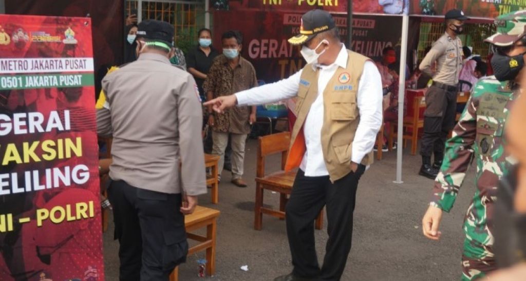 JAKARTA - Kepala Badan Nasional Penanggulangan Bencana (BNPB) sekaligus Ketua Satuan Tugas (Satgas) Penanganan Covid-19 Ganip Warsito melakukan peninjauan vaksin di SDN Duri Pulo 03, Kecamatan Gambir, Jakarta Pusat, Kamis (22/7). Peserta yang andil dalam kegiatan vaksinasi ini tidak hanya dari orang dewasa, namun juga dari kalangan anak-anak.