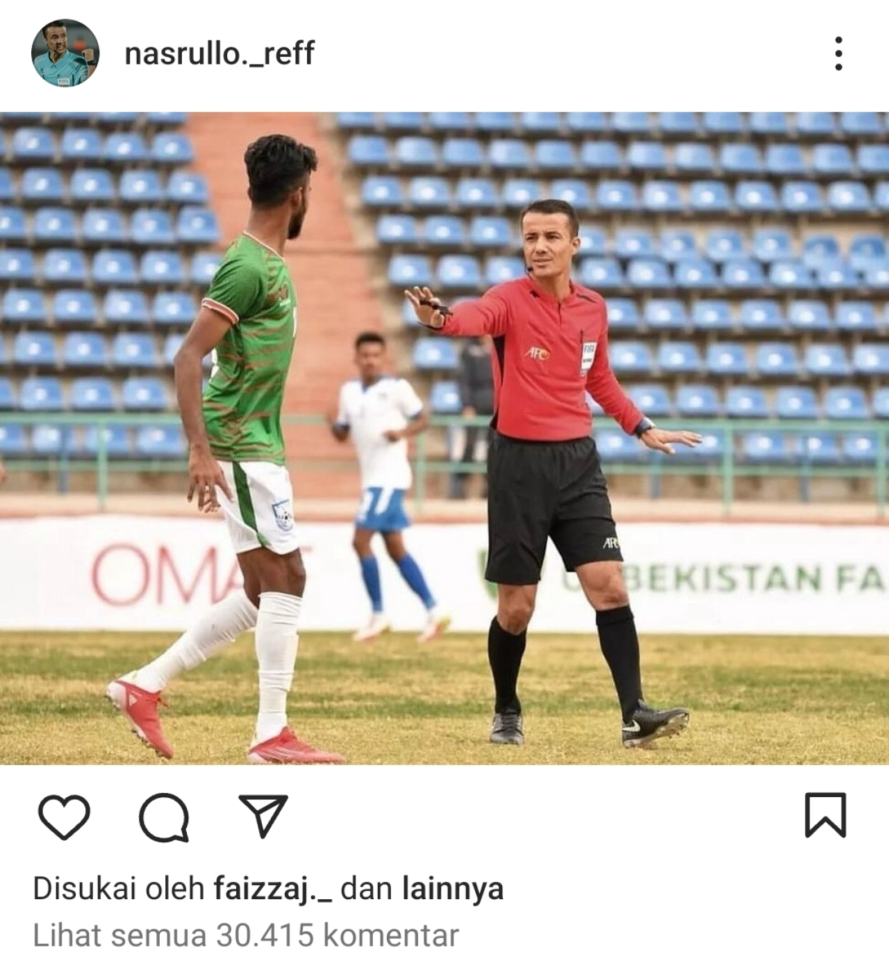 Akun Instagram sang pengadil @nasrullo_ref, langsung disebut warganet. Mereka ramai-ramai menghujat Kabirov akibat aksinya.