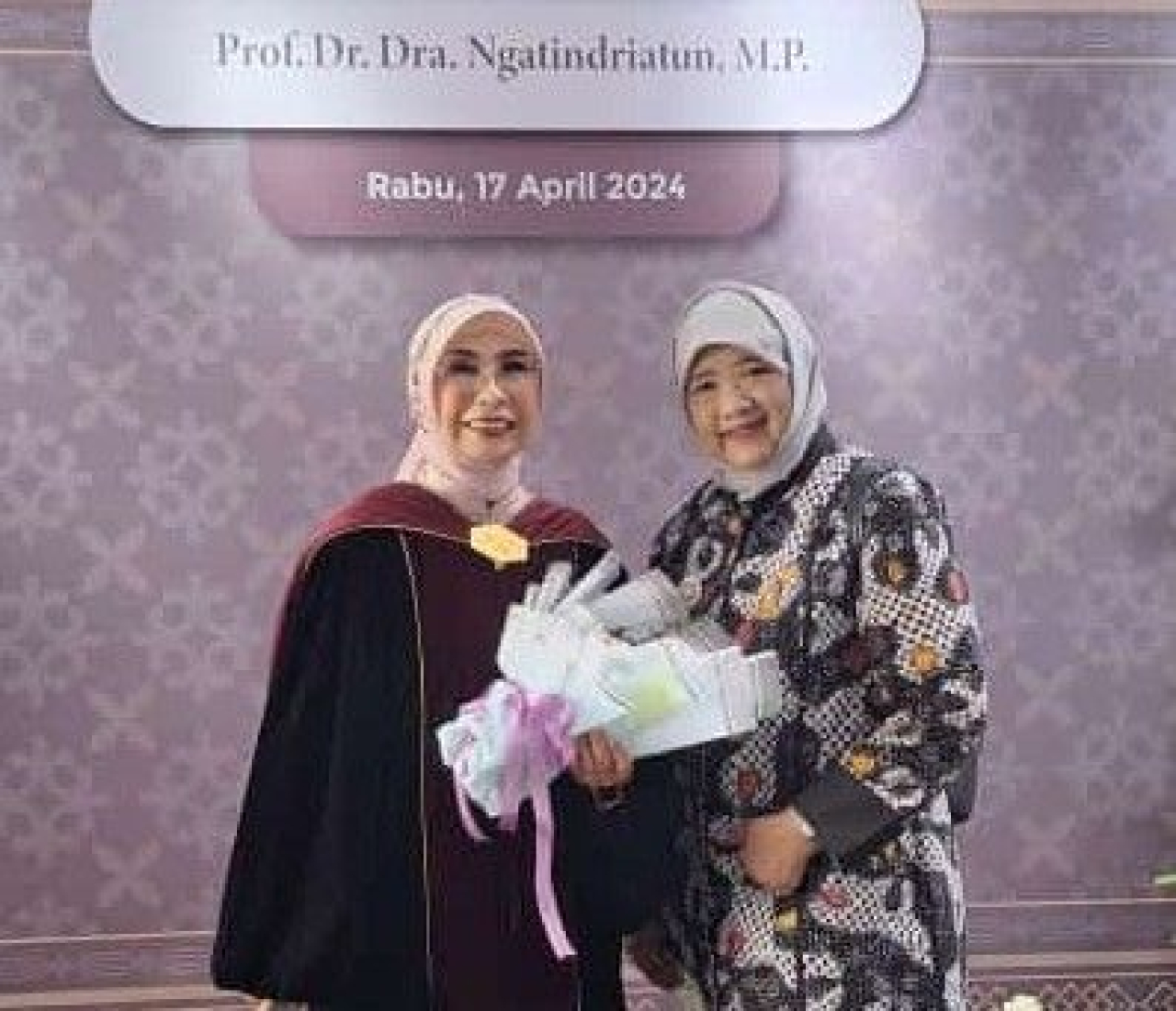 Ucapan selamat mengalir dari para pengunjung. Seorang peserta undangan yaitu Dr. E. Caroline, SE, M Si. menyampaikan selamat dan sukses kepada Prof Atin atas pengukuhan guru besarnya.hms