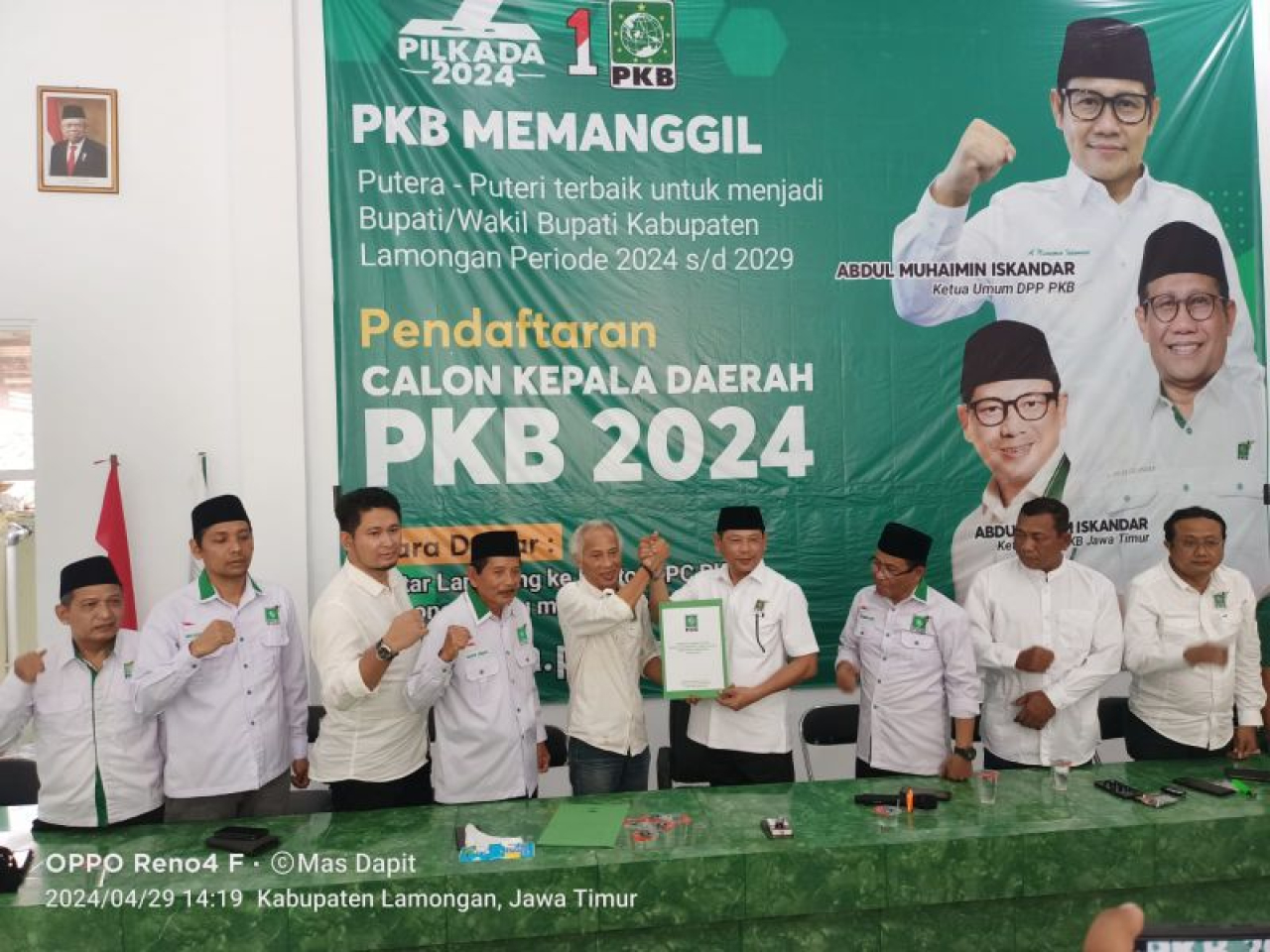 Hal itu dibuktikan dengan pendaftaran sebagai Bacabup di Dukungan Elemen Satuan Kerja (DESK) Pilkada Dewan Pengurus Cabang (DPC) Partai Kebangkitan Bangsa (PKB) di jalan Pahlawan Lamongan.