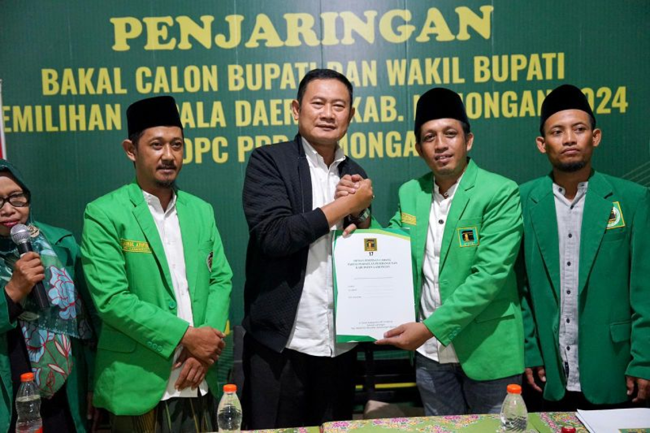 Seperti diketahui, penjaringan Bacalon Bupati dan Wakil Bupati Lamongan periode 2024-2029 dibuka Partai Politik dan diikuti Yuhronur Efendi sebagai Bakal Calon Bupati, diantaranya PDI-P, PAN, PKB, Partai Nasdem, Partai Demokrat dan saat ini PPP.