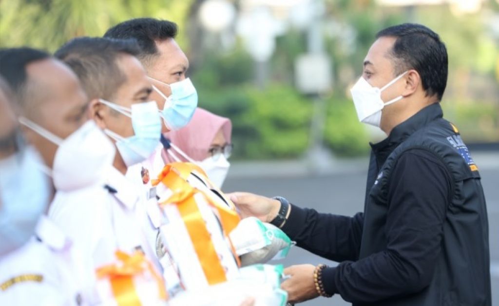 Dalam kesempatan itu, Wali Kota Eri juga menyerahkan bantuan secara simbolis berupa beras, masker, dan oximeter kepada Camat untuk kemudian disalurkan ke setiap Rumah Sehat yang ada di wilayahnya masing-masing.