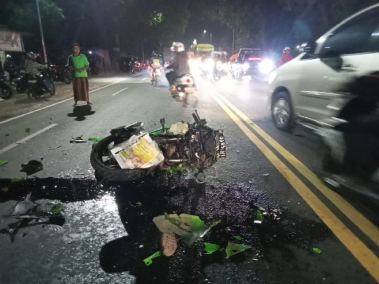 "Pas di tengah jalan akhirnya tabrakan terjadi pemotor menabrak bagian depan mobil tersebut," ujar Sutoko.