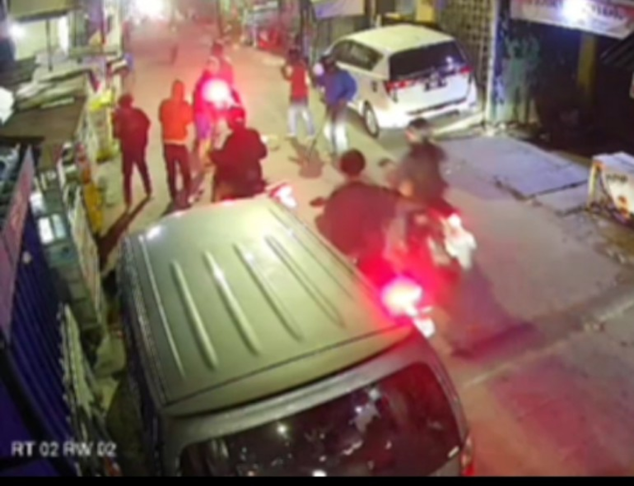 Saat saling kejar ada salah satu orang dari kelompok yang terlibat tawuran terjatuh dan saat itulah terjadi pembacokan bertubi-tubi menghujam tubuh nya.