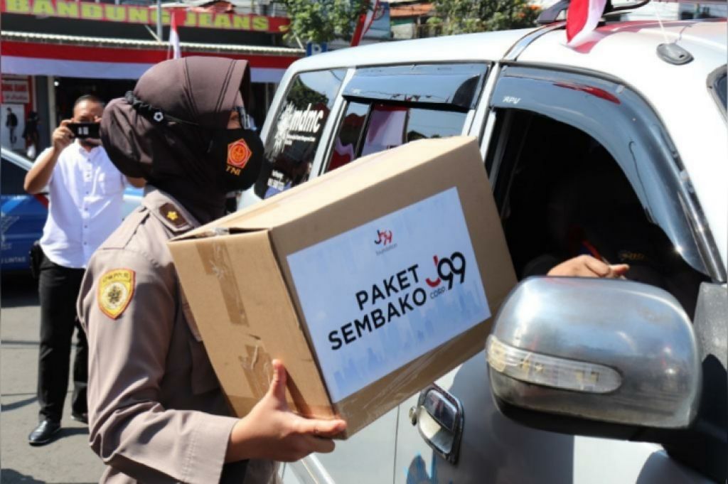 "Ada sedikitnya 100 paket sembako, 200 masker dan 100 bendera merah putih dibagikan oleh petugas kepada pada driver ambulans," paparnya.