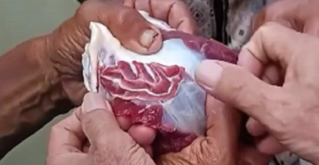 Daging bertuliskan lafaz Allah terlihat dari video yang diunggah akun Instagram @fakta.indo. Dalam video tersebut terlihat irisan daging itu membentuk lafaz Allah dengan panjang 10 cm.