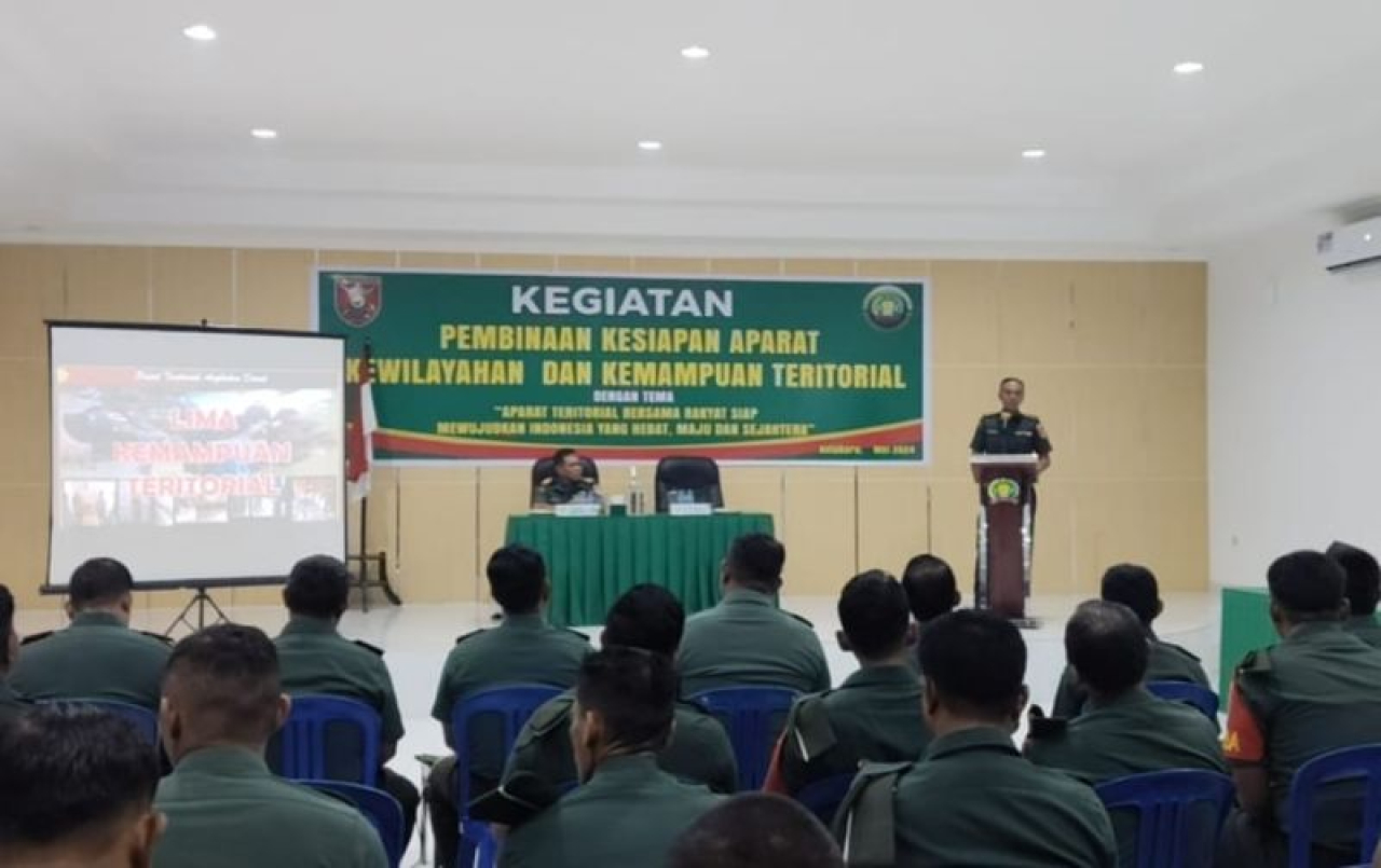 KOTABARU (Realita) - Di Aula Kantor Kodim 1004/Kotabaru, diadakan kegiatan pembinaan kesiapan aparat, kewilayahan dan kemampuan Teritorial bagi Babinsa yang berada di wilayah kesatuan Kodim 1004/Kotabaru, Jum'at (21/06/2024).