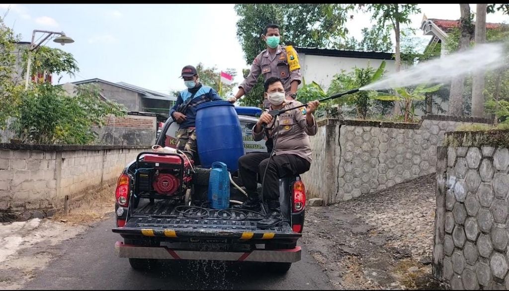Penyemprotan disinfektan sendiri dilakukan bersama Petugas Puskesmas dan Kecamatan Pulung. Satu buah mobil disinfektan dikerahkan untuk melakukan penyemprotan rumah-rumah warga di wilayah ini.