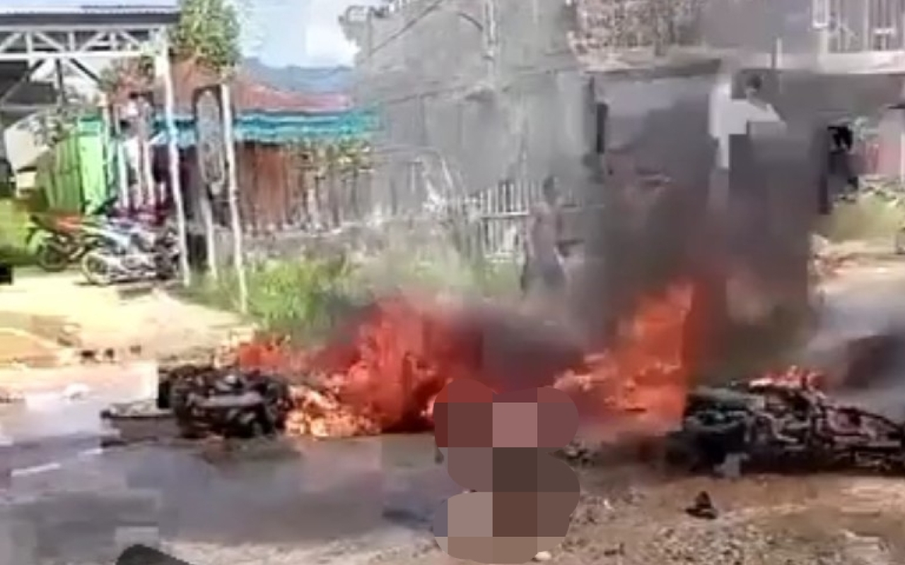 Menurut Kasatlantas Polres Singkawang, Iptu Sangidun, kronologi kejadian tabrakan yang menyebabkan terbakarnya dua kendaraan dan korban luka bakar di Jalan Tani, 16 Juli 2024.