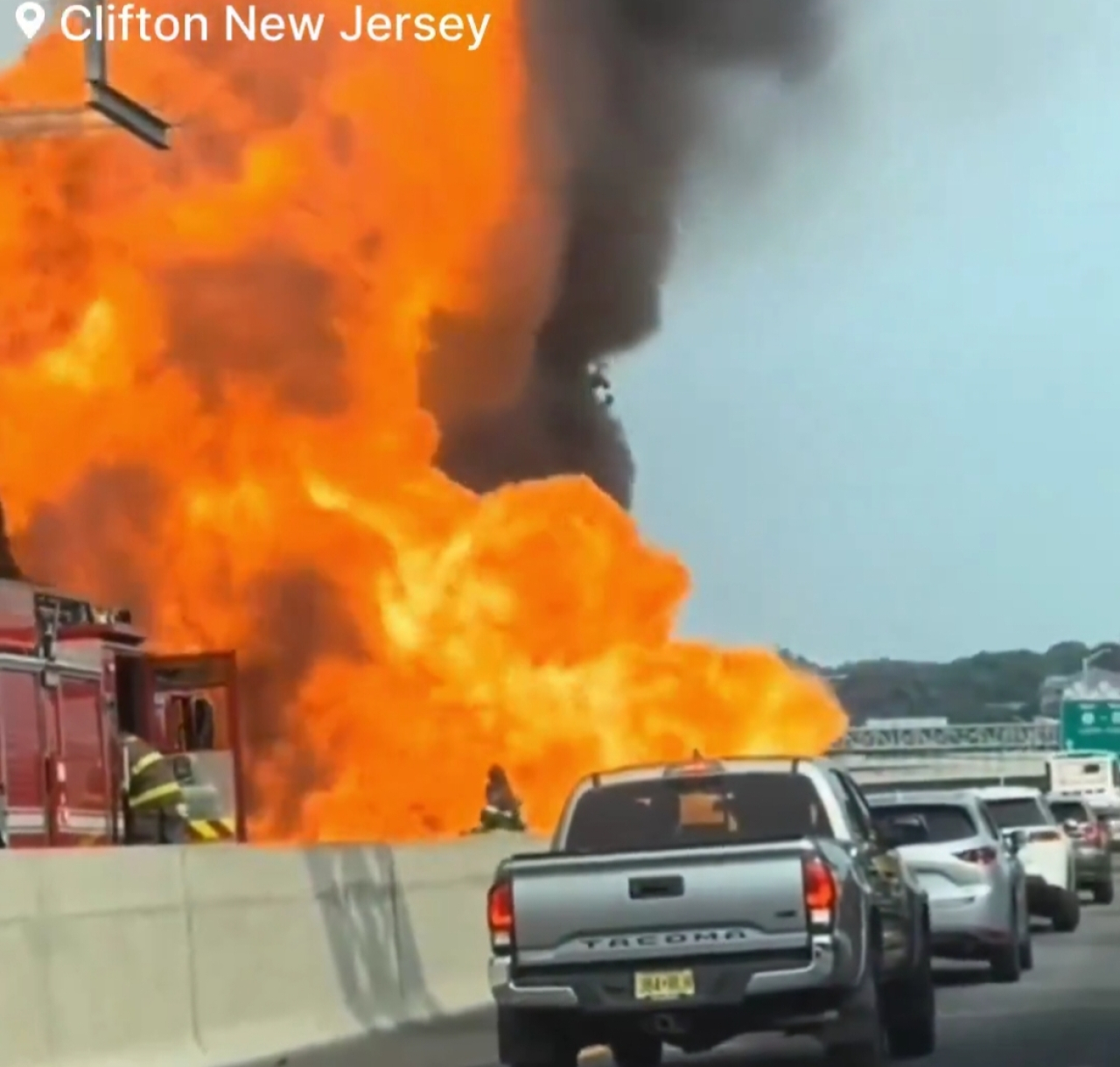 NEW JERSEY- Sebuah truk trailer yang membawa bahan kimia berbahaya menabrak dinding penghalang dan meledak di Clifton, New Jersey, negara bagian Amerika Serikat setelah ditabrak dari belakang oleh sebuah bus.