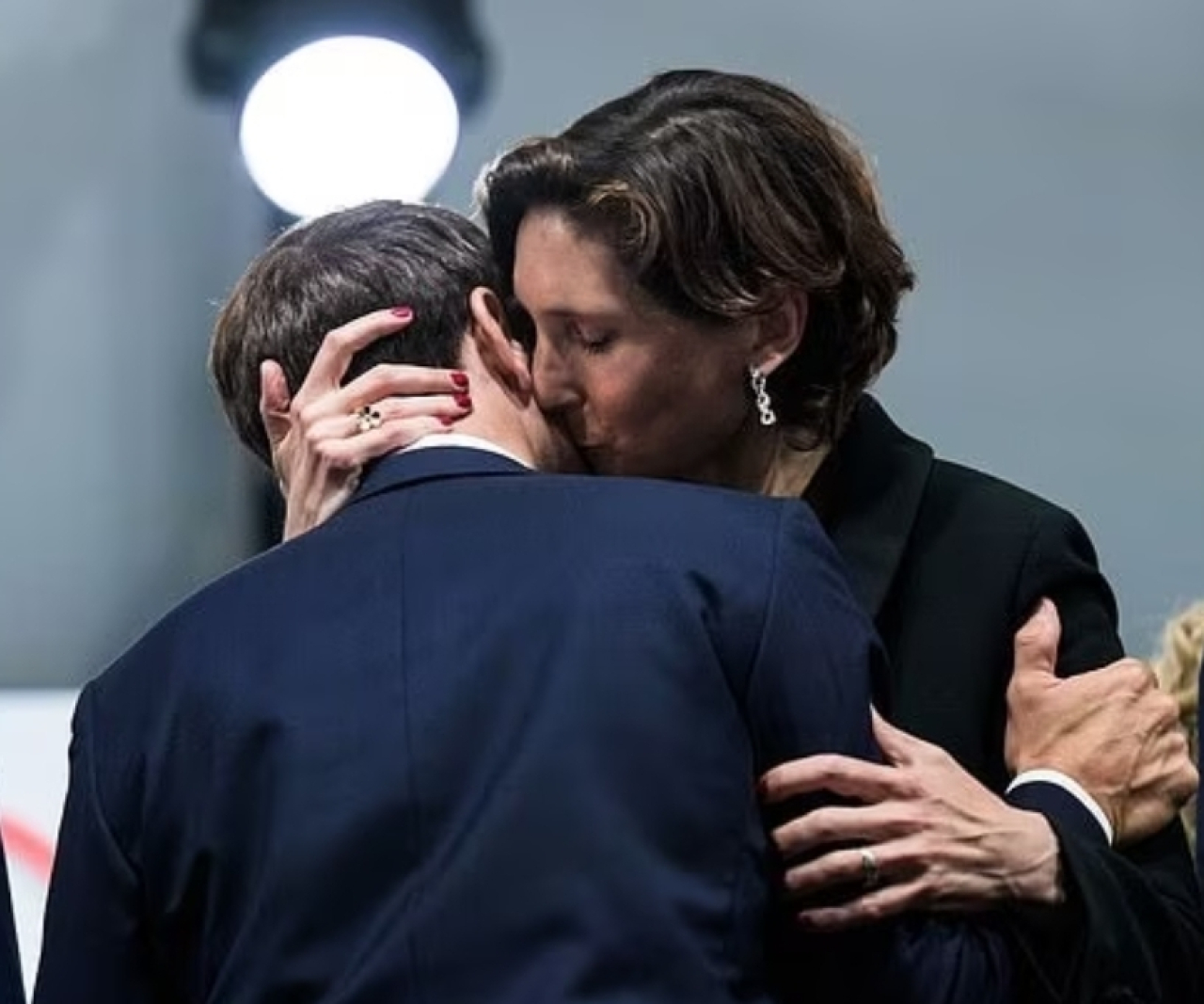 Pertemuan mereka terjadi saat upacara pembukaan Olimpiade Paris 2024. Dalam foto tersebut, terlihat Ms Oudea-Castera mencium sang predisen di dekat leher Macron.