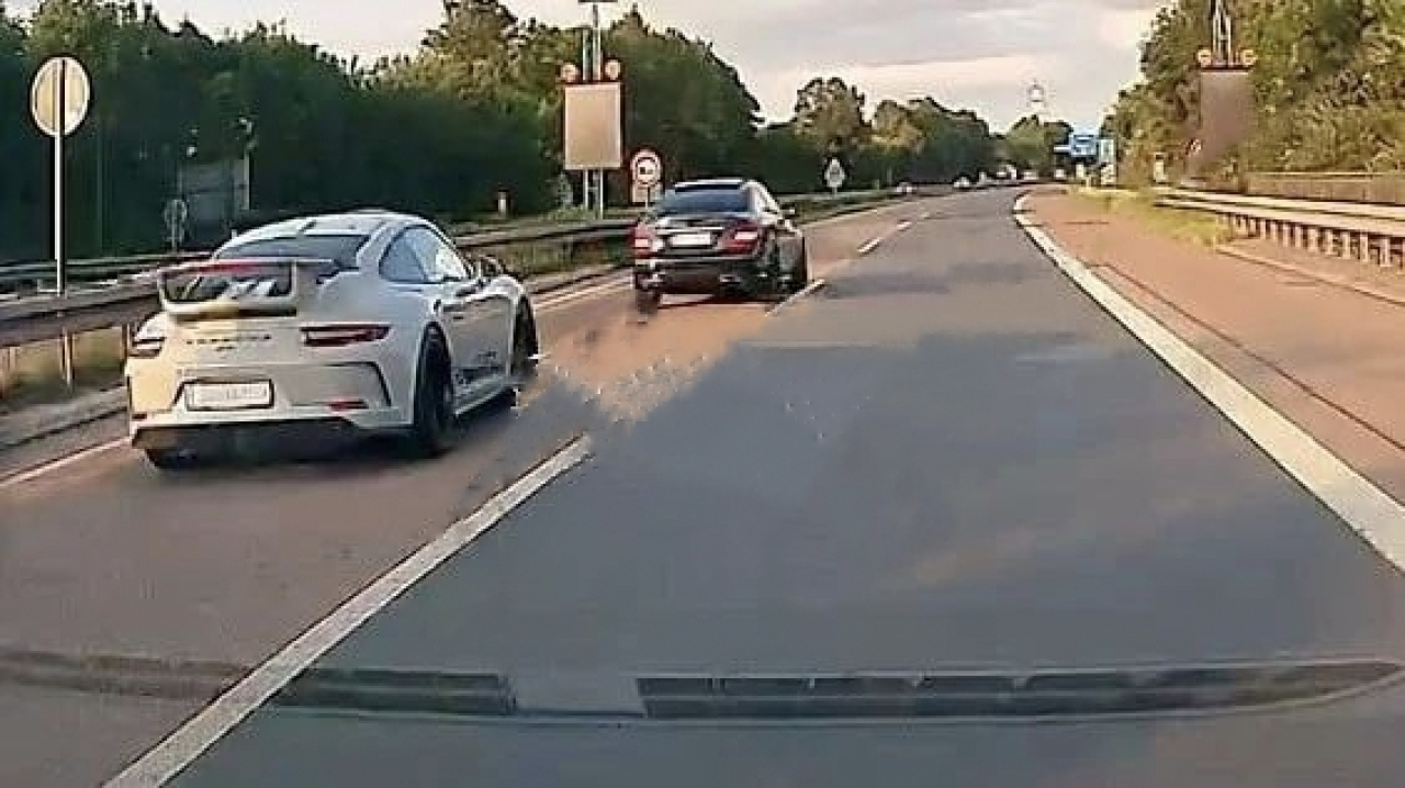 Sesaat sebelum masuk, Mercedes-Benz dikabarkan berpindah ke jalur kanan sementara sebuah Porsche mencoba menyalip. Hal ini dibuktikan dengan bekas selip yang terlihat di seberang jalan. Porsche kehilangan kendali pada kecepatan lebih dari 200 km/jam dan tergelincir sekitar 250 meter di atas aspal dan melewati hutan kecil sebelum terbakar