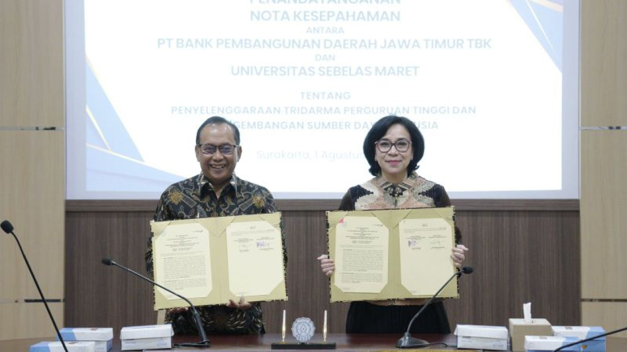 SURAKARTA (Realita) - PT Bank Pembangunan Daerah Jawa Timur Tbk (Bank Jatim) dan Universitas Sebelas Maret (UNS) Surakarta pada Kamis (1/8/2024) telah melakukan penandatanganan nota kesepahaman atau Memorandum of Understanding (MoU).