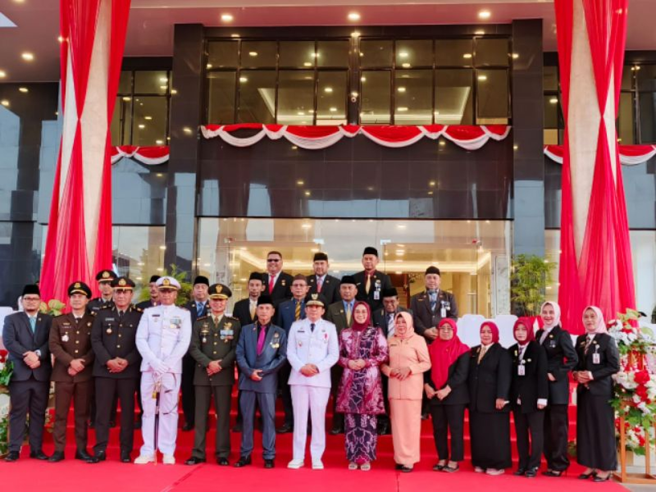 Wakil Bupati Kotabaru Andi Rudi Latif bertindak sebagai inspektur upacara yang hadir bersama ibu Andi Irmayani, serta didampingi Sekretaris Daerah H.Said Akhmad dan Yulianti Zairina, Sabtu (17/08/2024).