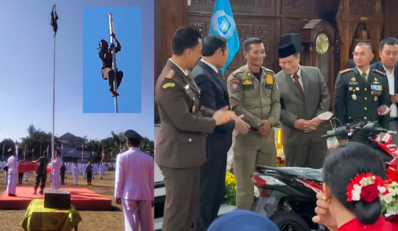 LAMONGAN (Realita) - Insiden tali putus terjadi pada momen pengibaran bendera merah putih dalam upacara peringatan Hari Ulang Tahun (HUT) Kemerdekaan Republik Indonesia ke-79 yang di gelar di Kecamatan Paciran, Kabupaten Lamongan, Sabtu (17/08/2024).