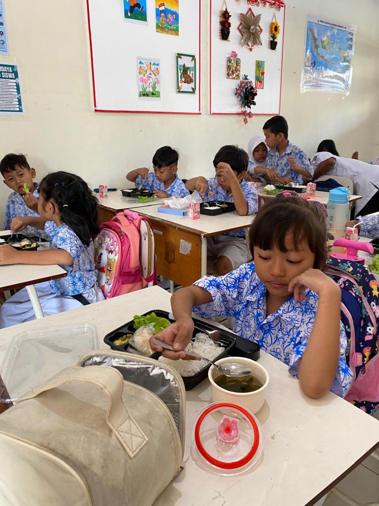 Pihaknya melanjutkan SOP tak berhenti sampai disana. Setelah semua makanan dibagikan, para siswa harus mencuci tangan dan berdoa terlebih dahulu sebelum mulai manyantap makanan. Kemudian, setelah selesai makan para siswa juga diajarkan untuk memilah sampah dan memasukannya pada wadah-wadah yang sudah disediakan sekolah.