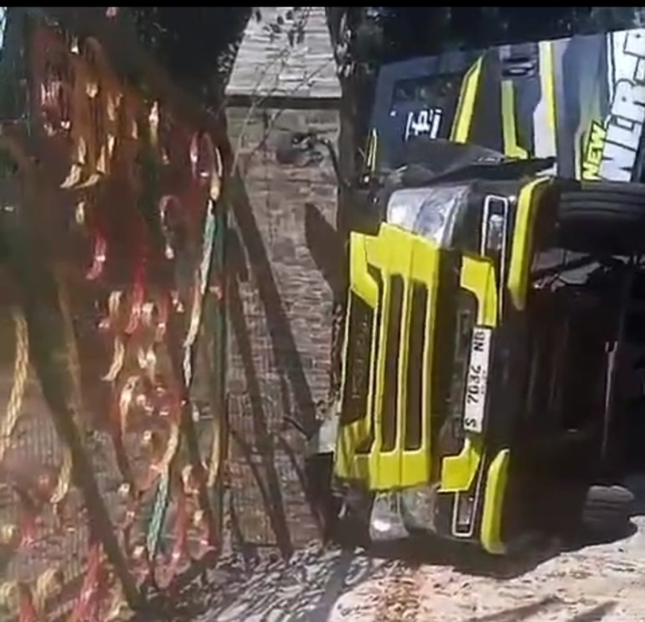 Saat melewati jalan menurun dan menikung, tiba-tiba sopir Elf kehilangan kendali atas mobilnya.
