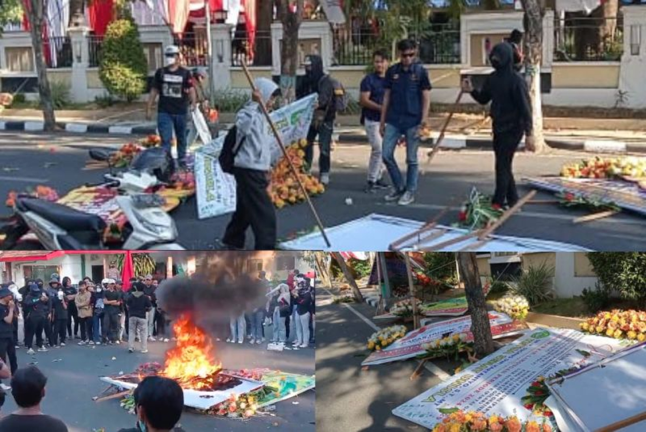 Demonstrasi ini diwarnai insiden saling dorong antara mahasiswa dengan petugas Kepolisian hingga perusakan dan pembakaran karangan bunga ucapan pelantikan anggota DPRD baru periode 2024-2029 yang berjejer di depan Gedung DPRD Lamongan.