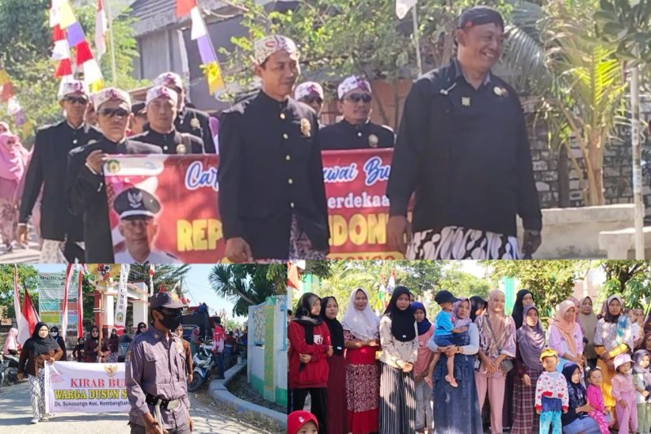 LAMONGAN (Realita) - Ribuan warga Desa Sukosongo, Kecamatan Kembangbahu, Kabupaten Lamongan, rela berjalan kaki sepanjang kiloan meter di bawah panas matahari untuk mengikuti Karnaval yang diadakan Pemerintahan Desa setempat dalam rangka merayakan Hari Ulang Tahun (HUT) Kemerdekaan Republik Indonesia ke 79 tahun, Minggu (25/08/2024).