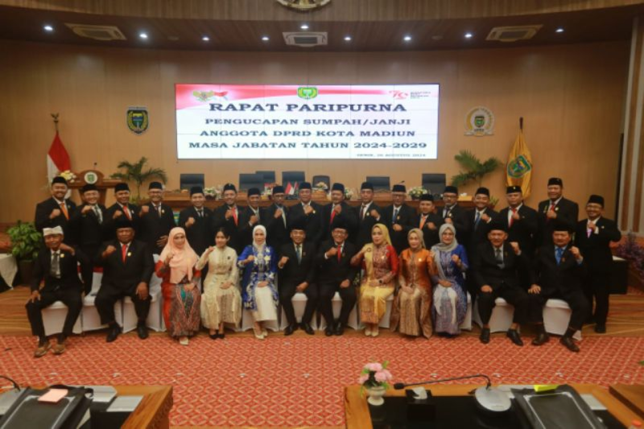 MADIUN (Realita) – Anggota DPRD Kota Madiun periode 2024-2029 resmi dilantik. Hal itu bersamaan rapat paripurna pengambilan sumpah atau janji anggota DPRD, Senin (26/8/2024). Dari total 30 anggota dewan yang dilantik, tercatat 13 anggota yang merupakan wajah baru.
